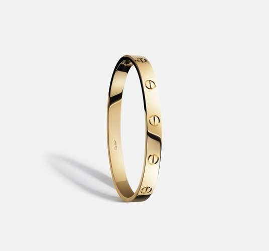 Love est l’expression de la vision du design de Cartier. Lignes pures jusqu’à la perfection : un bracelet ovale imaginé en 1969 à New York par Aldo Cipullo qui se compose de deux arcs de cercle rigides et plats que l’on doit visser pour les assembler à l’aide d’un tournevis adapté.