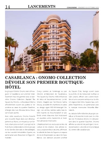 Le groupe hôtelier Onomo vient d’inau- Conçu comme un hommage au pat- du Square Club, lounge ouvert toute