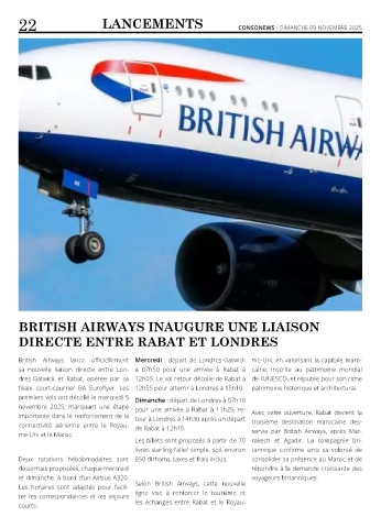 me-Uni et le Maroc. servie par British Airways, après Mar-